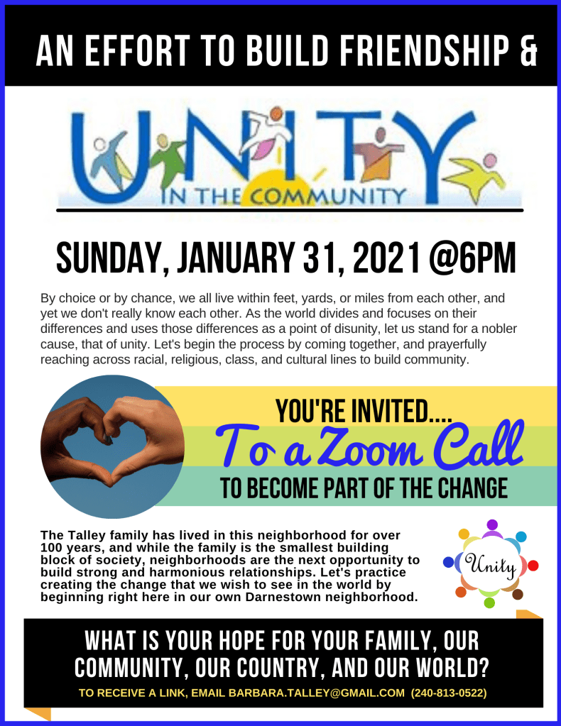 Other Events This is a sample flyer that I am using in my personal attempt to bring about unity in my neighborhood. This is not open to the public. Share this: Share on X (Opens in new window) X Share on Facebook (Opens in new window) Facebook Like Loading...