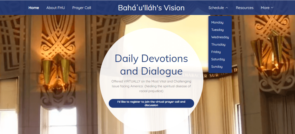 Inspired by the conference and anxious about the urgent need to focus on the “most VITAL and challenging issue” and moved by Sadie Oglesby’s twenty days with the Guardian back in 1927, the organizers in consultation with the participants agreed to allow me to transform the space into a virtual university focused primarily on restoring dignity to people of African descent. It has evolved into a space where after daily prayer, we study, reflect, grow together. and keep the conversation focused on eliminating racial prejudice.